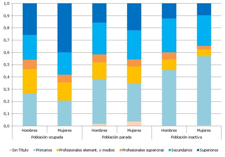 La proporción de mujeres ocupadas con estudios superiores es diez puntos porcentuales superior a la proporción de los hombres, según cifras de la Estadística de Población y Viviendas.