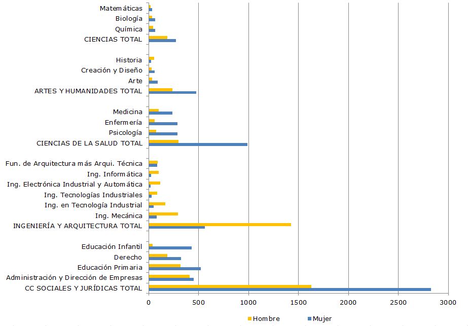 En la titulación de grado en Ingeniería mecánica 81 mujeres y 293 hombres finalizaron estudios; en el grado en Ingeniería Electrónica Industrial y Automática 19 mujeres y 114 hombres lo hicieron. Así mismo, 85 mujeres y 88 hombres finalizaron estudios de grado en arquitectura (Fundamentos de Arquitectura o Arquitectura Técnica), en dicho curso.