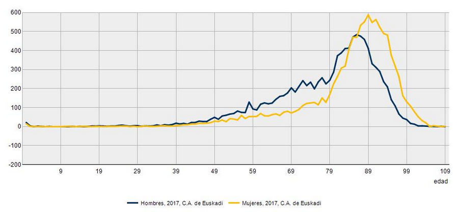 Defunciones de la C.A. de Euskadi por sexo y edad. 2017.