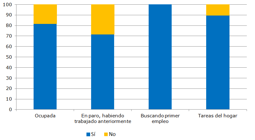 Prevalencia (%) de lactancia por situación en relación a la actividad de la madre. 2018