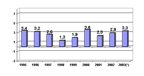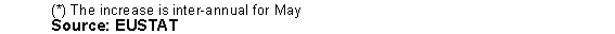 Among the prices of raw materials that registered the highest inflation rates in May 2003 were: Glass (4.5%), Lime, gypsum and plaster (2.0%), Electric energy (1.7%) and Iron and steel (0.9%). On the other hand, reductions were registered in the average monthly prices of raw materials for Oil by-products (-4.7%), Plastic piping (-0.4%) and Explosives and gases (-0.2%), amongst others.