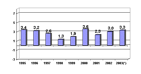 The inter-annual growth rate (June 2003 compared with June 2002) stands at 3.3%.