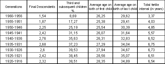 The reduction in fertility within marriage comes together with the fact that among generations over the age of 40, the number of people who have opted to remain single is higher. Thus, among the generations of 1941-1945 and those of 1956-1960, the percentage of single persons rose 6 points in both sexes, giving a proportion of definitive single persons in the latter generation of 16% for males and 12% for females. These proportions, however, are lower than those of Spain and the rest of Europe, where in neither case is the number of single persons below 20% for males and 15% for females.