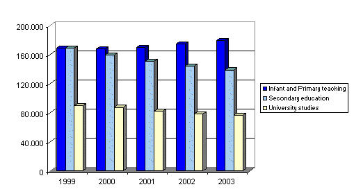 61% of University students study long-term degrees, among which figure Business Administration and Management, Law, Industrial Engineering, Psychology, Computer Engineering, Economic Sciences and Fine Arts, leading the ranking of chosen degrees. As regards short-term studies, the most popular are Business Studies, Engineering (Mechanical, Industrial Electronics and Management Information Technology), Social Education and Infant School Teaching.