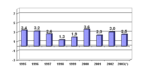 The inter-annual growth rate (October 2003 compared to October 2002) came to 2.5%.