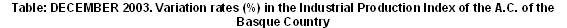 In 2003 as a whole, the highest accumulated growth, in absolute terms was in the following sectors: “Oil refining” (21.4%), "Rubber and plastic" (7.1%), "Electric material" (6.4%) and "Chemical industry" (2.9%). Conversely, the most negative accumulated rates were in "Leather and footwear industry" (-14.7%), "Other manufactured" (-4.7%), "Timber industry" (-3.7%) and "Machinery" (-1.2%).