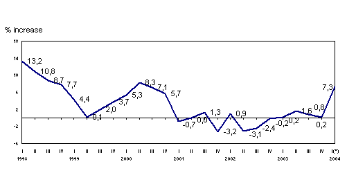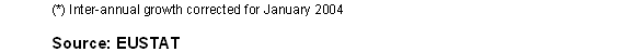 The most positive inter-annual variations in January 2004, in absolute terms corresponded to the sectors of "Oil refining" (6.7%), "Chemical industry" (6.6%), "Timber industry" (6.5%), "Metallurgy and metal articles" (6.3%), "Non-metal industry" (6.1%), "Electric energy, gas and water" (5.6%) and "Electric material" (4.9%).