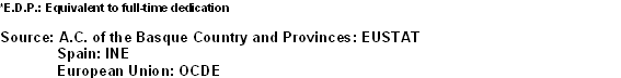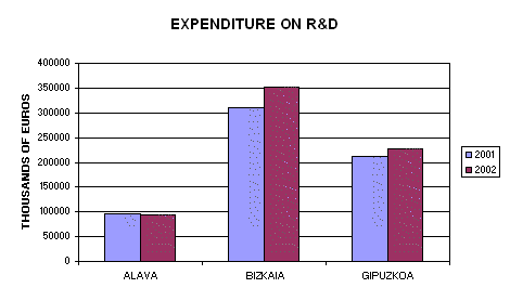 The figure of 1.5% of expenditure on R&D with respect to GDP marks the frontier between those countries that make a significant effort in research from those that make only low level investments; therefore, Bizkaia and Gipuzkoa continue to be at the level of countries such as France, Denmark, the United Kingdom, Norway, Austria and Canada.