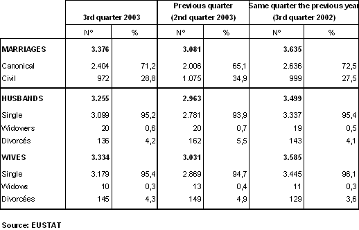 MARRIAGE STATISTICS (EMAT) 3rd quarter 2003