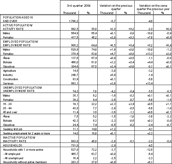 The number of people out of work, calculated to be 74,300 in the third quarter, fell in all three provinces. In Bizkaia there were 42,300 unemployed people, 2,300 less than three months earlier, although its rate of 8.3% remains the highest of the three provinces. In Álava, with a total of 7,500 people out of work, there was a fall of 1,500 and the unemployment rate for the province lowered to 5.2%. The number of unemployed in Gipuzkoa decreased by 500, making the unemployment rate 7.4% and leaving 24,400 people affected by unemployment.