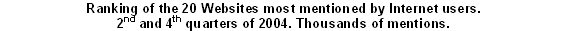Despite the last quarter of the year not being the most suitable season, travel agencies received 17,400 more mentions than in the second quarter of 2004, rising to 74,400. IBERIA managed 20,200, some way in front of TRAVEL-CLUB.COM, with 8,200 and MUCHOVIAJE.COM, with 7,900.