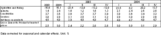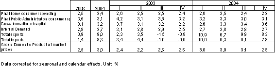 As regards Demand, internal demand was seen to grow by a real rate of 2.7%, one tenth less than the previous year. The external balance, therefore, made a positive contribution to GDP, reversing the pattern of the previous year, when growth of internal demand was higher than that of GDP.