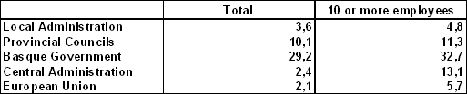 Of the innovating companies that received public funding, with regard to the origin of this aid, the number that obtained finance from the Basque Government clearly stood out, with 29.2% of the total number of these companies, a percentage which was lower when the aid came from other administrations. In the case of companies with 10 or more employees, the Basque Government also provided the highest percentage, namely 32.7% of businesses.