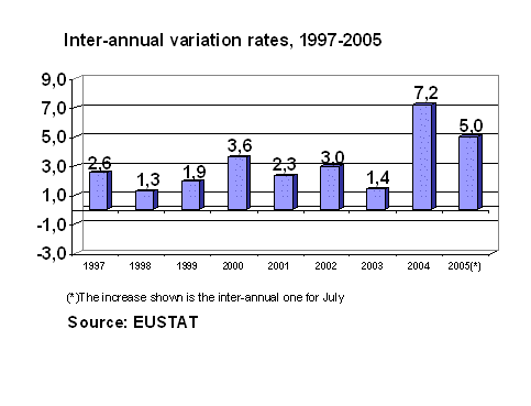 In July the highest growth in prices corresponded to raw materials consumed by Oil By-Products (3.5%), Lime, gypsum and plaster (2.6%), Asphalt products (2.1%) and Glass (1.1%), among others. Prices fell however, for the raw materials used in Metal Piping (-4.6%), Explosives and gases (-1.5%), Mining Arids (-0.7%), and Baked earth (-0.4%), among others.