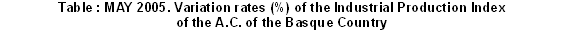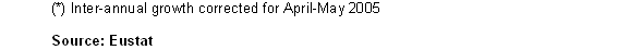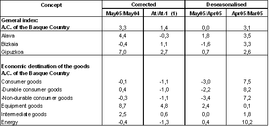 Over the whole of the first five months of 2005 Capital Goods grew by 4.8%, Intermediate Goods rose 0.6%, while Energy, in turn, fell by 1.3%, and Consumer Goods decreased by 1.1%, as a result of the fall registered by Durable Consumer Goods (-1.0%) and Non-Durable Consumer Goods (-1.1%),all with regard to the first five months of 2004.