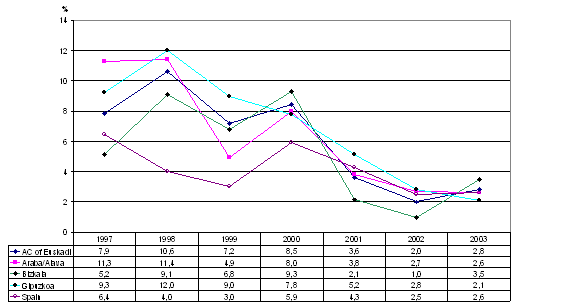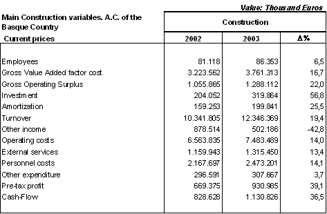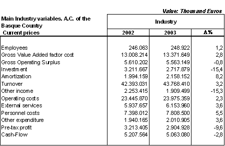 Employment in industry also showed 1.2% growth in 2003, meaning the creation of 3,000 net jobs over the year. In 1994 192,274 people were employed in industry and in 2003, nine years later, this figure had risen to 248,922 employees, meaning over 56,000 jobs in 10 years.