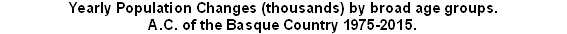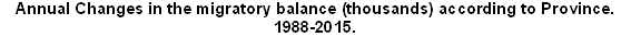 Historically, Alava has always had positive migratory balances, but the negative balances of the other two Provinces were so high, that even with a positive natural balance the total population fell. This situation changed suddenly in 2001 when a significant increase in immigration was registered producing positive balances for Bizkaia and Gipuzkoa, a situation which, with greater or lesser balances will be maintained until 2015. Even in the first period of the projection, from 2001 to 2005, Bizkaia will have a migratory balance higher than Alava, but from that year onwards the situation will return to being a higher migratory balance for Alava in comparison to the other Provinces.
