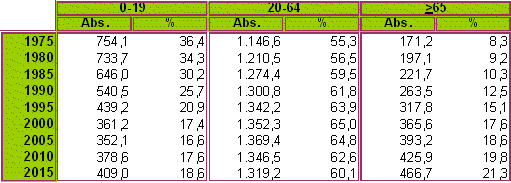 The population aged under 20, which represented 17.4% of the total population of the A.C. of the Basque Country in 2000, will rise to represent 18.6% in 2015, resulting in 47,700 more young people, in contrast with the previous trend of continuous falls in this segment of the population.