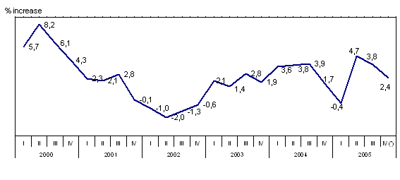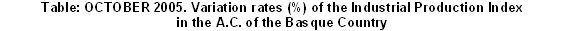 By sector, bearing in mind the classification of the major industrial sectors according to the economic destination of goods produced, the evolution of the index for October 2005 with regard to October 2004 shows the following variations: the highest inter-annual growth rate corresponded to Energy (8.3%), followed by Capital goods (5.2%) and Intermediate goods (1.0%). Consumer goods decreased by 3.7% overall, with a 3.2% fall for Consumer Durables and one of 4.0% for Consumer non-Durables, in relation to their position from a year before.