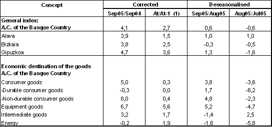 If we take in account the classification of the major industrial sectors according to the destination of goods produced, the evolution of the September 2005 index with regard to September 2004 shows the following variations: the highest inter-annual growth rate corresponded to Capital Goods (6.7%), followed by Consumer Goods (5.0%), where there was 8.0% growth on the part of Consumer Non-durable Goods and a 0.3% decrease for Consumer Durable Goods. The rate for Intermediate Goods grew more modestly at 3.2%, while Energy diminished 0.2% in relation to the position of one month previously.
