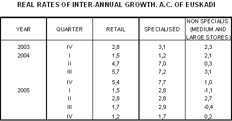In specialized retail trade the highest inter-annual growth corresponded to the Food sector, which registered 5.6% nominal growth and in real terms came down to 1.7%. Personal equipment, however, registered a more discrete evolution of 2.2% in current euros and the evolution was estimated to be 1.6% in constant euros. Sales of Other Consumer Goods products increased by 2.1% in nominal terms, and comes to 4.4% in real terms. Sales of Household Equipment products registered a -1.9% decrease in nominal terms and this decrease is a higher -2.3% in real terms. In the section of medium and large stores the subsectors where food premdominates increased inter-annual sales by 3.5%, while the pedominance of Other products obtained a 3.0% increase.