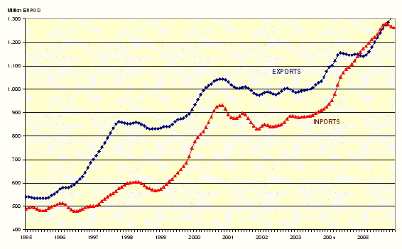 The inter-annual variation for exports destined for the European Union was positive, at 3.1%, with growth for those heading for France (1.9%), Italy (33.0%), Portugal (2.3%) and Belgium (18.5%), but a setback in sales to Germany (-13.7%) and the United Kingdom (-25,2%) in particular. Exports to the USA experienced 39.6% growth.