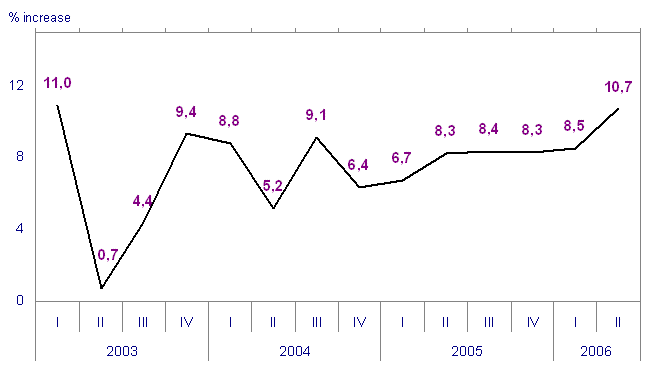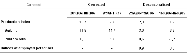 In inter-quarterly terms, if the activity of the sector in the second quarter of 2006 is compared to the first, the Building subsector shows a 3.0% positive evolution and the Civil Works subsector presents a 0.6% inter-quarterly evolution, both subsectors showing a slightly accelerated profile, although with different rates.