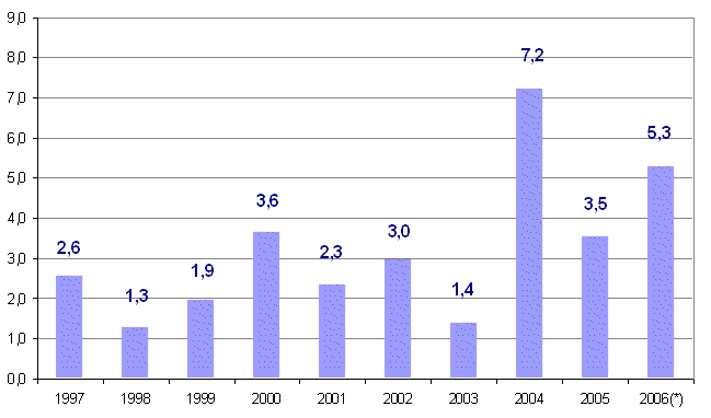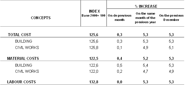 In August the highest growth in prices corresponded to raw materials consumed by Electric energy (5.4%), Asphalt products (4.7%), Glass (2.5%) and Iron and steel (1.7%), among others. On the other hand, prices of raw materials fell for Oil by-products (-2.3%), Mining arids (-0.2%), Structures and boilermaking (0.1%) and Manual Tools (-0.1%), among others.