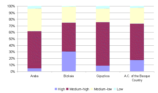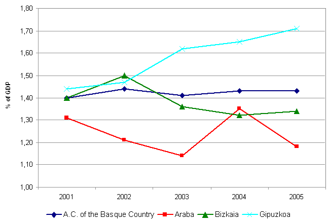 In relation to the execution sectors, each province presents different peculiarities. In Álava there is still important expenditure in the Public Administration sector, due to the concentration of diverse bodies that depend on the administration, which have increased resources earmarked for R&D by 13%. The performance of the business sector was quite different, where 9 million euros less were invested than the previous years, which was responsible for the drop in internal expenditure.