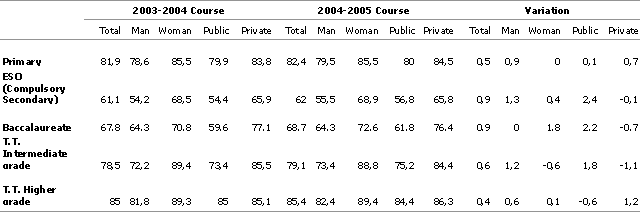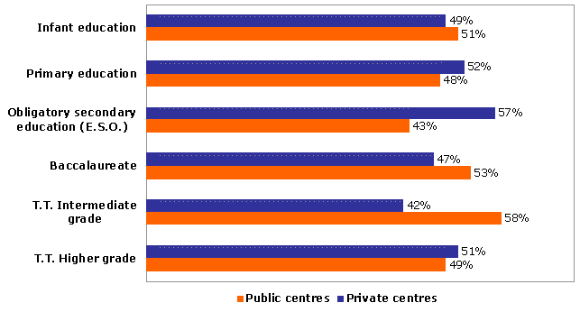 The academic year 2005-06 saw 368,976 students in some type of non-university education in the A.C. of the Basque Country, which meant a 1.6% increase in matriculation in relation to the previous academic year, according to Eustat data. Of these, 336,046 pupils were enrolled in Infant, Primary and Secondary Education, and 32,930 students took courses within Regulated Specialised Education, including Dance, Music, Arts and Crafts, Sports and Languages.