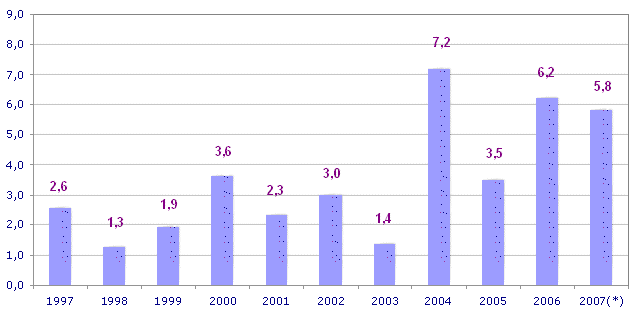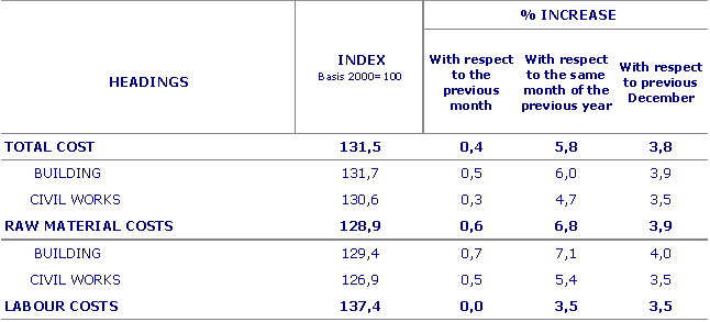 In the month of May the highest increases in prices were observed in raw materials consumed in Glass (4.0%), Iron and Steel (2.9%), Petroleum Derivates (2.0%), Asphalt Products (2.0%) and Explosives and Gases (1.7%), among others. On the other hand, there has been a decrease in prices of raw materials in the following chapters: Electric Power (-1.3%), plastic piping (-0.3%), Copper Structures and Copper Forming (-0.3%), Baked Clays (-0.2%) and chiselled stone (-0.2%), among others.
