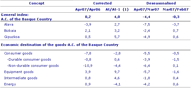 Inter-monthly rates, April 2007 in relation to March 2007, were negative in all three provinces: decreasing by 7.5% in Álava, 4.9% in Gipuzkoa and 2.4% in Bizkaia.
