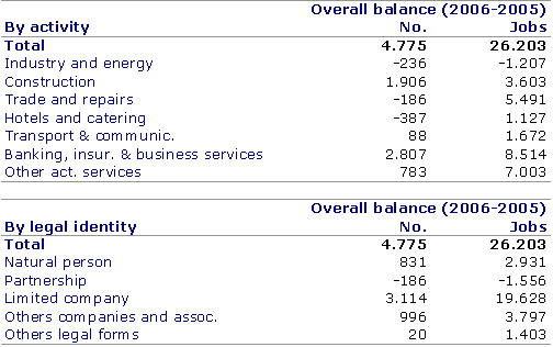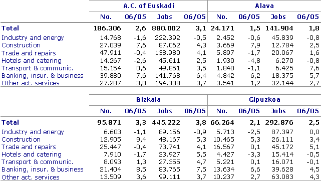 Companies operating in the A.C. of the Basque Country, except for those of the primary sector, carried out their activities in 186,306 establishments (factories, shops, offices, etc.) and employed 880,002 people in 2006, 3.1% more than the previous year, according to Eustat data. Employment in the A.C. of the Basque Country has grown by 120,419 since 2001, an average annual accumulated rate of 3.0%.
