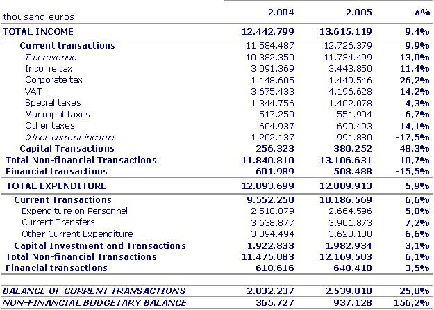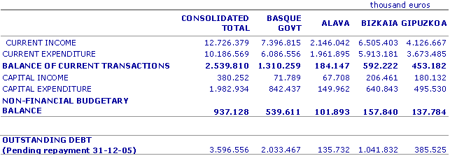 Current expenditure of the Basque administration –made up of the Basque Government, Provincial Councils and Municipal Administrations, together with their corresponding Autonomous Bodies and supra-municipal Organizations- increased by 6.6% in 2005, according to EUSTAT data. Total expenditure came to 10,186.3 million euros, while current income amounted to 12,726 million, with an annual growth rate of 9.9%, on the same period in 2004