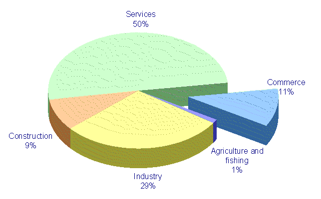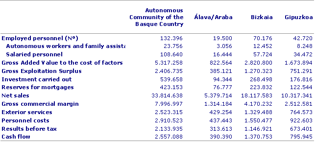 The commercial sector, which is made up of the wholesale commerce, retail commerce, and car sales and repairs subsectors, experienced a nominal growth of 36.9% over the 2000 to 2005 five-year period, that is, eight tenths above the Gross Added Value generated by the whole of the economy (36.,1%). Its contribution to the Gross Domestic Product of the Autonomous Community of the Basque Country reached 11%, one point above what it was in the year 2000 (9.9%).
