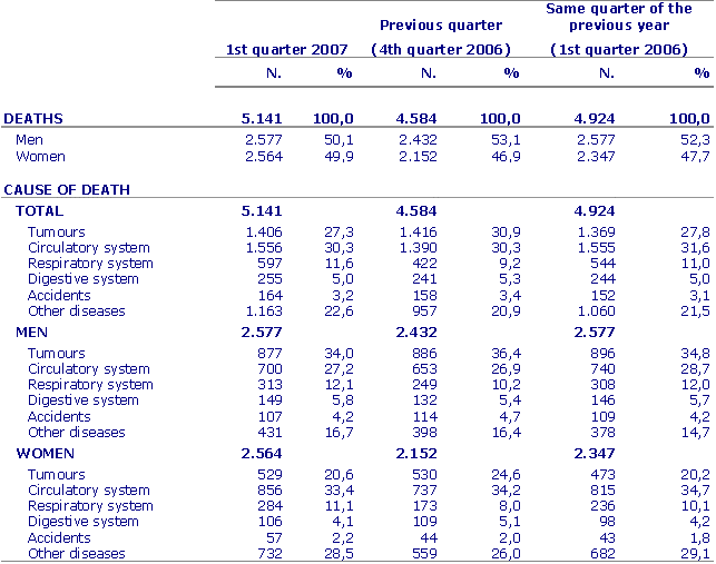 5,141 people died in the A.C. of the Basque Country in the first quarter of 2007, 4.4% more than in the same period of the previous year, according to EUSTAT data. By province, 675 people died in Álava, an increase of 13.6%, 2,753 in Bizkaia (+0.7%) and 1,713 in Gipuzkoa (+7.3%).