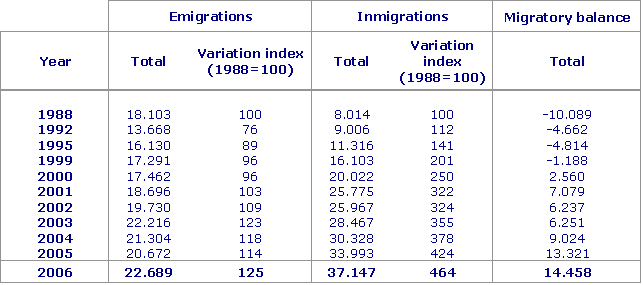 It was the seventh year running for the A.C. of the Basque Country to record a positive migratory balance. By province, Bizkaia, which gained 7,878 people, showed the highest migratory balance in absolute figures, rising by 6% in relation to 2005. Gipuzkoa, which gained 3,340 people, increasing its balance by 16% as regards the previous year. As for Álava, it gained 3,243 people, representing a 7% increase.