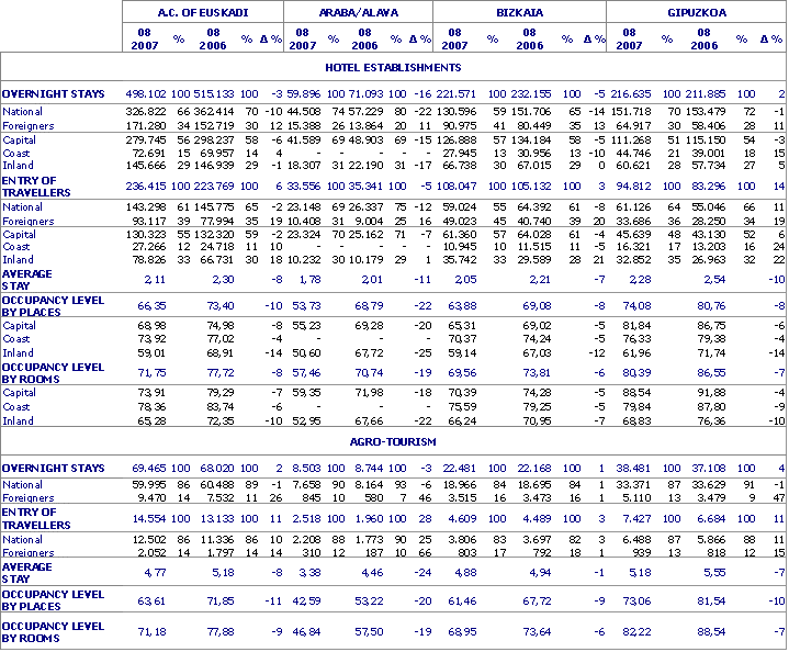 Among visitors from within the state an increase was seen for those coming from Madrid and Asturias, among others. There was a fall mainly in the number of those coming from Catalonia, Community of Valencia and Andalusia. Among foreigners there was a rise for those coming from France, Belgium, Germany and the United Kingdom among others, with a fall for those from USA-Canada and Japan.