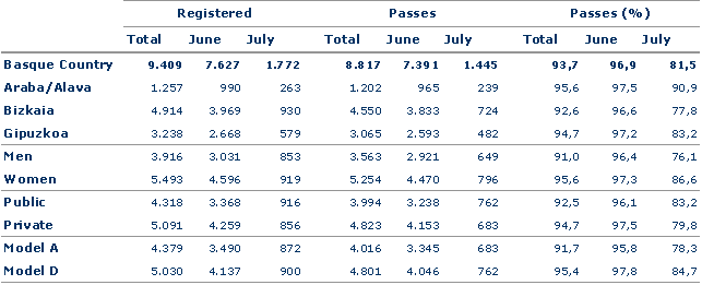 Although the differences were very small, Álava was the province at the top of the table as regards the percentage of passes in these University access exams (96%). It was followed very closely by Gipuzkoa, with 95% and last in the ranking came Bizkaia, with 93%.