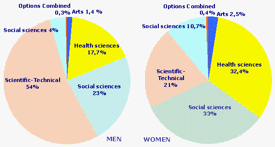 While half the male students chose the Scientific-Technical option, the female ones opted for Social and Health Sciences