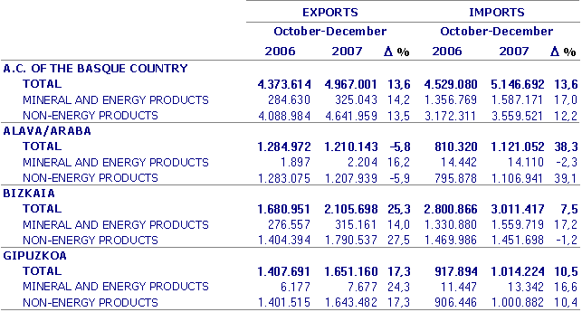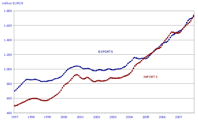 Exports whose destination was the European Union were up by 6.2% and special mention should be made of the growth in exports to Germany (10.1%) and the United Kingdom (17.6%) and, to a lesser extent, Belgium (8.5%) and Portugal (6.0%). Exports to Poland (53.7%), the Netherlands (32.7%) and the Czech Republic (24.8%) grew at a good rate, even though their volume was lower. Exports to Italy, Mexico and the United States of America fell by 11.0%, 16.0% and 3.4%, respectively.