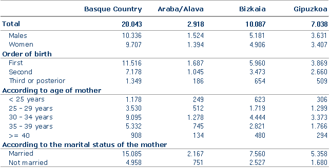 In 2006, births from unmarried parents amounted to 4,958, according to data elaborated by Eustat, the Basque Statistics Office. This amount represents 24.7% of the total of births and was above that of 2005 (23.2%). Alava and Bizkaia had percentages above the joint percentage of the Autonomous Community of the Basque Country, with 25.7% and 25.1% respectively, whereas Gipuzkoa was the only territory with smaller relative values (23.9%). The proportion of births from unmarried parents, which in 1990 amounted to 7.7%, has triplicated over the last seventeen years.