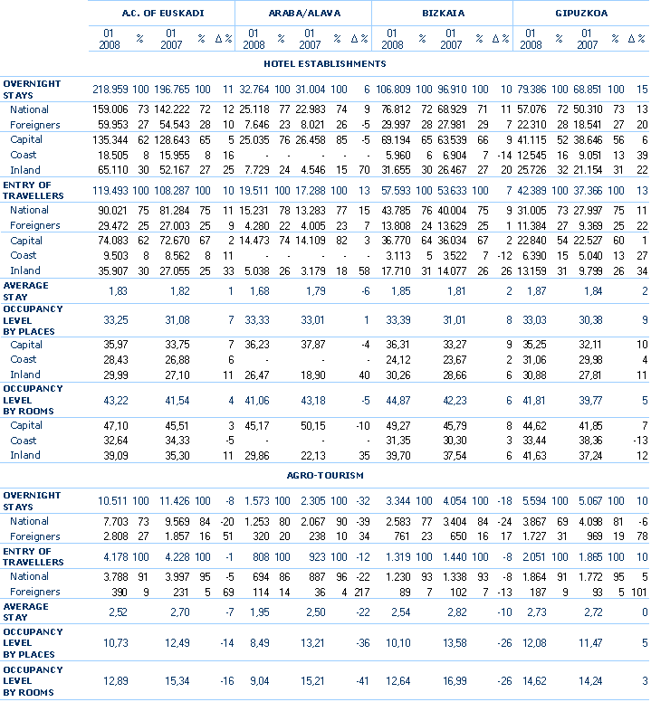 Among visitors from within the state an increase was registered for those coming from Catalonia, Madrid and Andalucía in particular. There was a fall among those coming from the Balearic Islands, the Canary Islands, Murcia and Navarre. Among foreigners, those coming from France, Italy, Portugal, Germany, Latin America and Belgium, among others, increased in number while those coming from the United Kingdom, Greece and USA-Canada, among others, decreased.