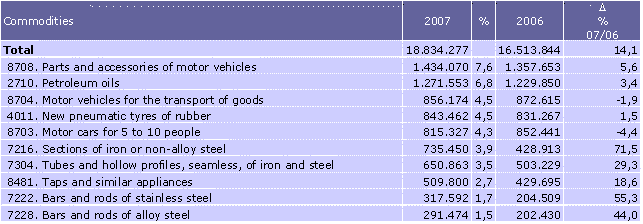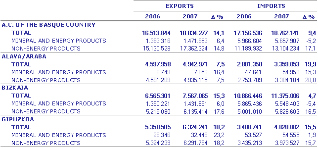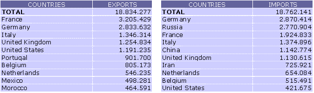 In terms of countries, five countries absorbed over half of the exports of the Autonomous Community of the Basque Country: France (17.0%), Germany (15.1%), Italy (7.2%), United Kingdom (6.7%) and the United States (6.3%). Likewise, there are five countries of origin of our imports that account for over half of the total: Germany (15.3%), Russia (14.8%), France (10.3%), Italy (7.3%) and China (6.1%).