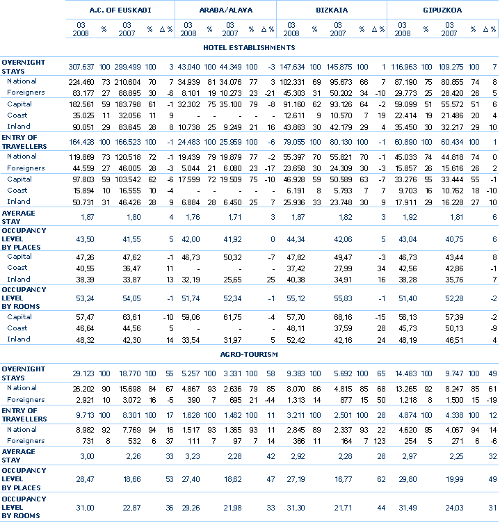 Among visitors from within the state an increase was registered for those coming from Catalonia, Galicia, the community of Valencia, Castilla-La Mancha and Asturias, in particular. The was a decrease in the number of visitors from Aragon, the Balearic Islands and La Rioja. Among foreigners, those coming from Portugal, Italy, Latin America, Japan and Non EU European countries increased in number, while those coming from the United Kingdom, France, Sweden, Ireland, Finland, among others, decreased.