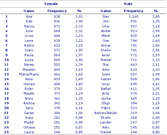 In particular, birth statistics for 2006 show 1,511 different girl names and 1,358 for boys. Out of those, 1,015 girl names and 955 boy names appear only once and among them are Chinese, African, Arabic, Italian, and Anglo-Saxon, etc names. These results show that since 1999 the number of names used has increased 58.6% for boys and 44.3% for girls.