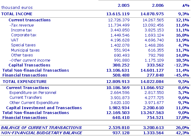 Current expenditure of Basque Administrations –made up of the Basque Government, Provincial Councils and Municipal Administrations, together with their corresponding autonomous bodies and supra-municipal bodies- increased by 8.6% in 2006, according to EUSTAT data. Total expenditure reached 11,066.9 million euros while current income rose to 14,267.6 million euros; resulting in an annual growth rate of 12.1% with respect to 2005.