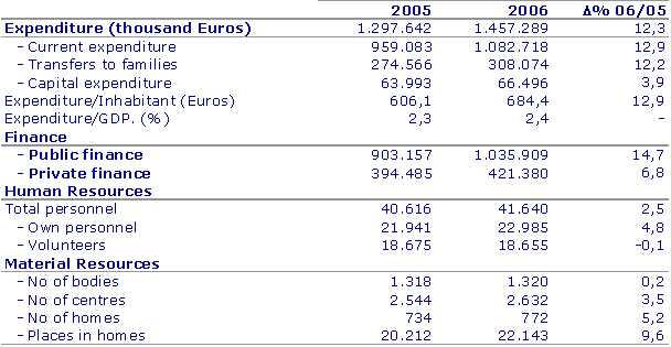 Social services as a whole directly employed 22,985 people, 2.4% of people with jobs, of which 69% were women. This amount of jobs increases if subcontracted personnel employed in direct attention are taken into account: this is equivalent to 4,672 full-time jobs. Half of this subcontracted personnel works in home-help services. 18,655 volunteers worked for free in the social services during 2006, and their collaboration represented an effort equivalent to that of 1,724 full-time employees.