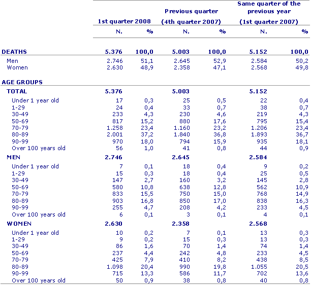 In the first quarter of 2008, 5,376 people died in the A.C. of the Basque Country, 4.3% up on the same period of the previous year, according to Eustat data. By provinces, 2,960 people died in Bizkaia, which was a 7.3% increase, 1,470 in Gipuzkoa (+1.3%), while a total of 676 people died in Álava, which was the same figure as for the first quarter of 2007.