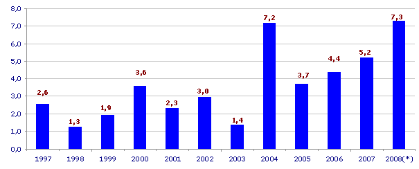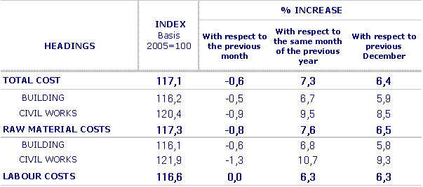 In September, with respect to August, the greatest price increases were seen in raw materials consumed by Electricity and Gas (2.6%), Rubber and Plastic (0.2%), Timber Industry (0.2%) and Machinery (0.2%). On the other hand, Oil By-products (-3.6%), Non-Metallic Industry (-1.7%), Metallurgy D 0-6.%) Metallic Articles D 0-3.%), Non-Metallic Industry (-0.2%) and Furniture Manufacturing (-0.1%) witnessed a fall in their prices.